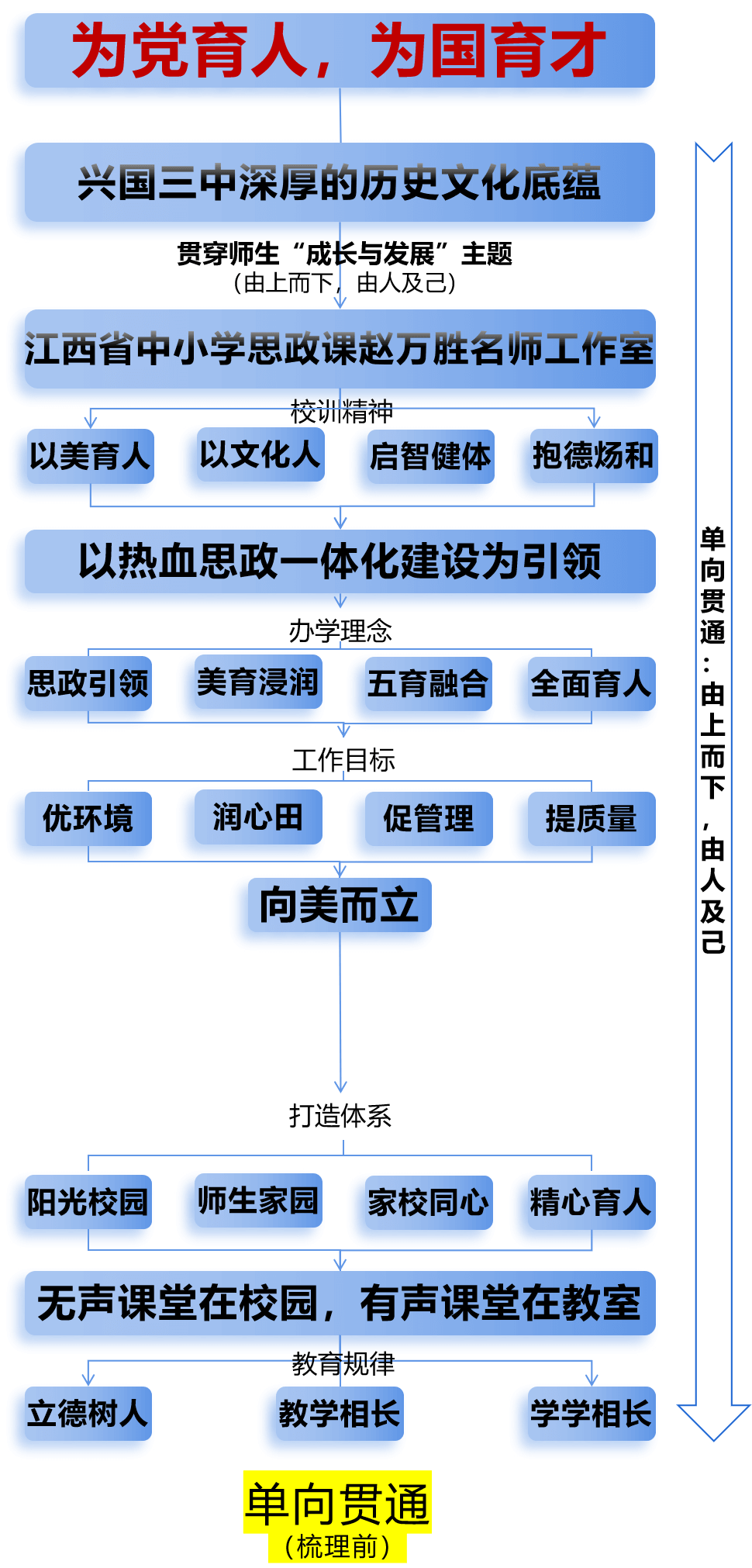 1.梳理前:兴国三中特色校园文化以单向贯通为主