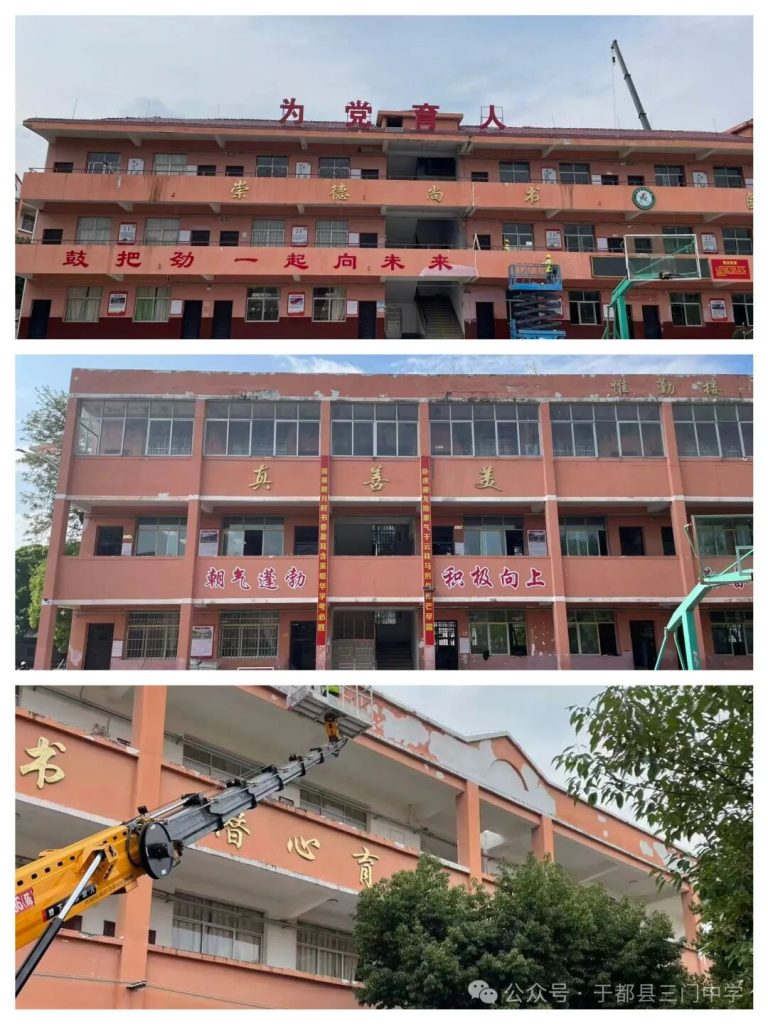 广州市名仁慈善基金会自2024年以来心系三门中学的发展,致力于支持校园文化建设等公益活动。基金会于2025年5月,帮助三门中学对惟谨楼、惟勤楼、求真楼等三栋教学楼进行外墙粉刷翻新,进一步改善了办学条件,美化了校园环境。