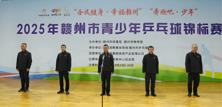 10月25日,2025年赣州市青少年乒乓球锦标赛在我县体育中心开赛。市体育局党组成员、竞训科科长郭训辉宣布开赛,县教育体育局党组书记、局长易照文在开赛仪式上致辞,县长征源旅游投资开发有限公司董事长葛奇霖,市乒乓球协会副主席、秘书长吴述华出席开赛仪式。县体育产业融合发展中心副主任肖骏主持开赛仪式。