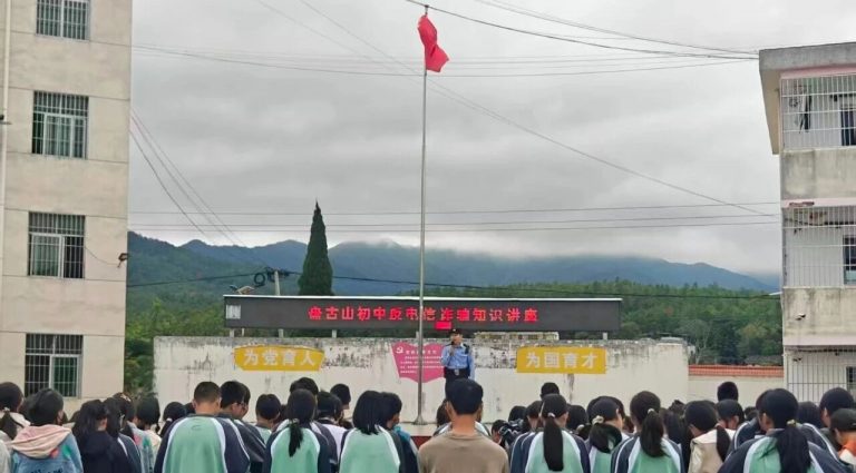 10月20日,盘古山初中邀请当地派出所民警进校,为师生开展安全宣讲活动。宣讲民警结合经典案例,重点讲解了校园欺凌的危害与应对措施,揭露了网络及电信诈骗的常见手段,引导学生树立法律意识,增强自护自救能力。(彭丽馨)