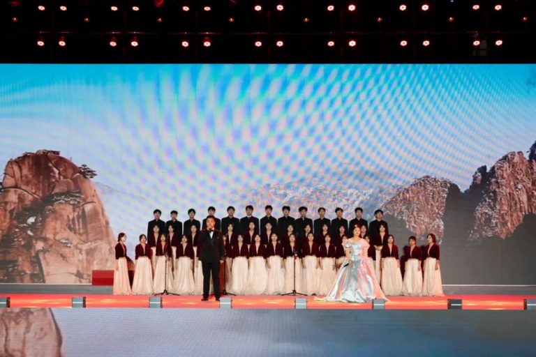 美,源于发现。现代舞《我心中的红》以富有张力的肢体语言,诠释了信仰与初心的炽热温度;经典诵读《文脉永续,盛世安康》铿锵有力,传递中华文脉的绵延与交融;梁冬老师独唱《追寻》唱出心中的赤诚;而《华裳礼赞 国风盛典》将晚会推向达到高潮,同学们身着精美华服,步履从容,尽显中华服饰之典雅与礼仪之邦的气度。