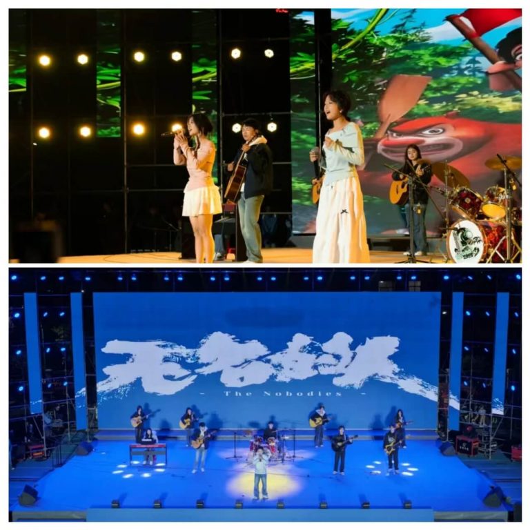 第二篇章尽显活力风采。《彩云之南》以飘逸灵动的舞姿,为晚会注入一抹清新悠远的民族韵味;高一年级的学生在情景剧《觉醒年代 青春对话》中化作觉醒年代的追光者,以笔为刃,以声为炬,在黑暗中点燃希望的火种;爵士舞《like a flower》展现了青年学子的蓬勃朝气;乐队演唱《勇往直前》《无名的人》致敬拼搏灵魂;古典舞《西子湖初妆》则勾勒出江南水墨的婉约意境,青春的多维之美在此完美呈现。
