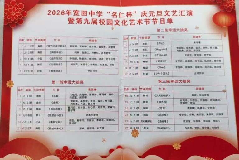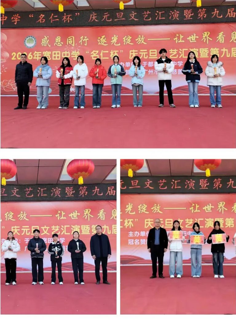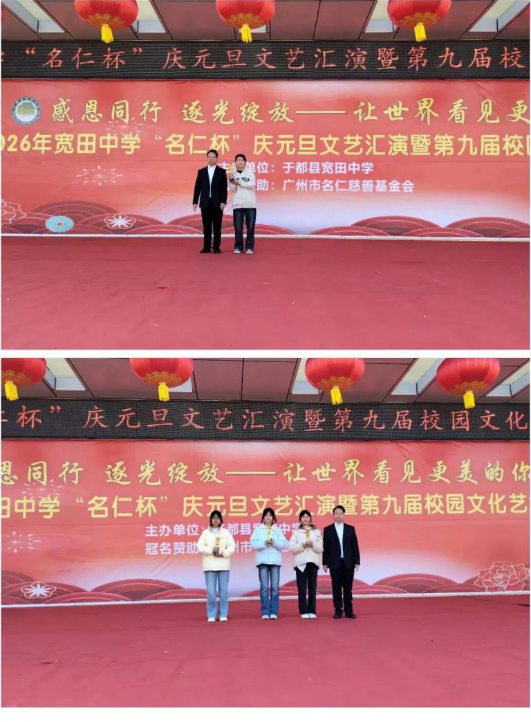 时光荏苒,岁律更新。为丰富校园文化生活、营造喜庆祥和的元旦氛围,引导学生常怀感恩之心、展现青春风采,我校于12月29日晚隆重举办2026年“名仁杯”庆元旦文艺汇演暨第九届校园文化艺术节。活动迎来于都县人大常委会副主任刘立新、广州市名仁慈善基金会发起人林礼君、县体融中心副主任黄小菁、县教体局群团服务股股长朱妍清、县教体局教育考试中心副主任刘艳红等一众领导嘉宾莅临指导。他们的到来,既是对我校办学成果与校园文化建设的肯定,更饱含着对青少年成长发展的深切关怀与殷切期望。