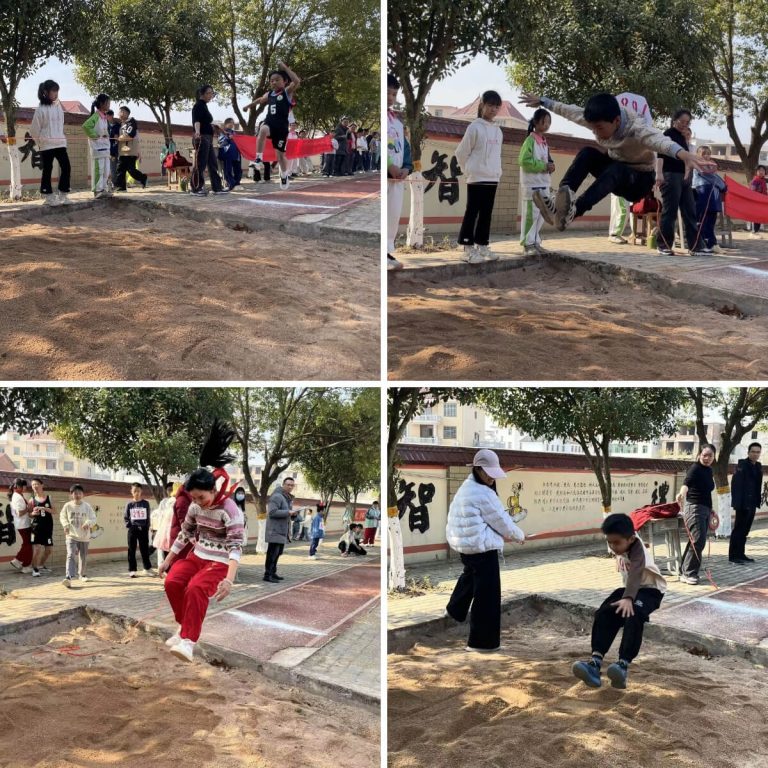 跳远赛场同样精彩。低年级选手,双脚蹬地、奋力向前;高年级选手则展开急行跳远,助跑、起跳、腾空、落地,沙坑中留下一串串坚实的脚印,每一次跳跃都是对自我极限的突破。